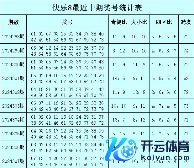 福彩满足8第2024307期开奖追思:07 13 14 20 27 30 31 36 37 39 41 42 43 44 46 56 61 66 73 77,其中奖号012路比为6:8:6,奖号余数012路比为10:9:1。