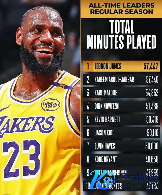 我们先说说这出场时刻的事儿。你瞧瞧,詹姆斯这回关联词把出场时刻的记载给刷新了,57447分钟!这可不是闹着玩的,这代表着老詹在球场上厮杀的每一分每一秒。想想看,从青涩少年到当今行将步入不惑之年,詹姆斯这篮球之路走得有多拦阻易。球迷们纷纷惊羡:“老詹啊,你这简直等于篮球界的劳模啊!”这背后的汗水和勤恳,我们是看在眼里,疼在心里。每一次的突破,都是对篮球最深千里的青睐。