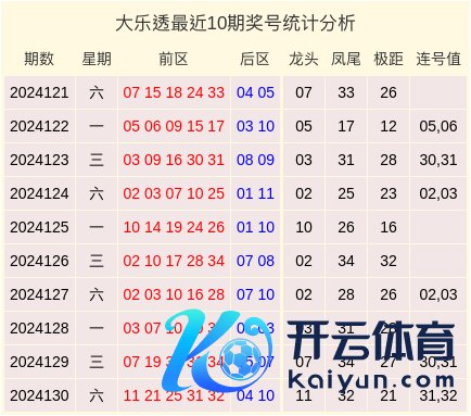 第2024131期大乐透数据统计分析