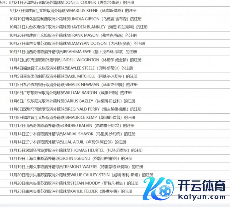 据统计,本赛季CBA开赛仅10轮比赛,CBA一经有24位外助被球队取消注册。