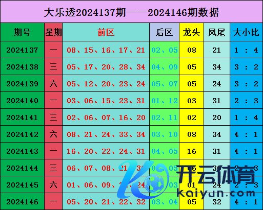 大乐透第2024146期奖号为:前区05 20 21 22 32体育赛事直播,后区03 04;奇偶比2:3,大小比:4:1。